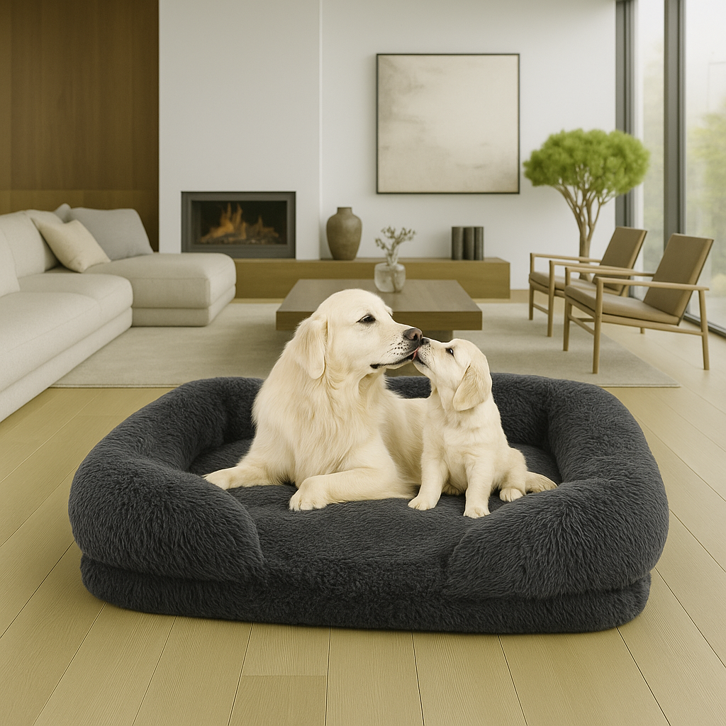 Het hondenkussen voelt superzacht aan maar is toch stevig. Past ook mooi in ons interieur!